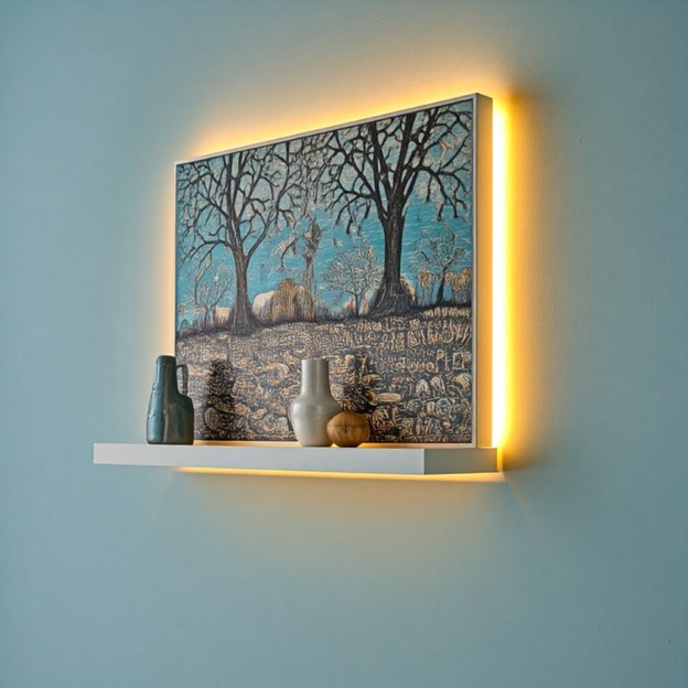 • Backlit Wall Art and Shelves: Install LEDs behind paintings, mirrors, or shelving for a subtle, dramatic effect.