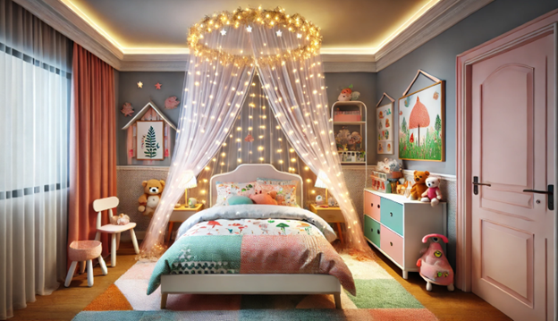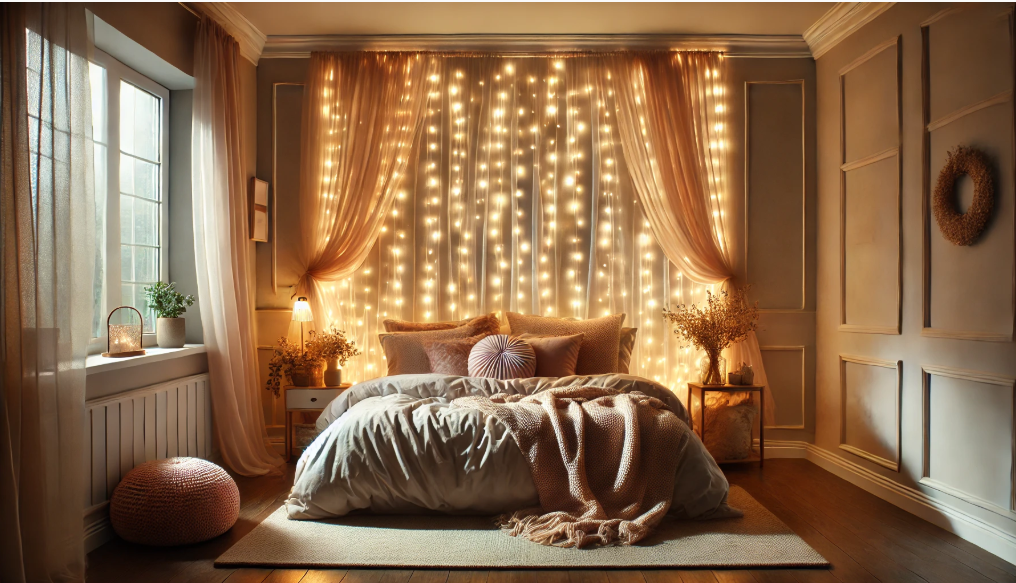 • Fairy-Lit Headboards: Wrap curtain string LEDs around your bed’s headboard or canopy for a dreamy ambiance.