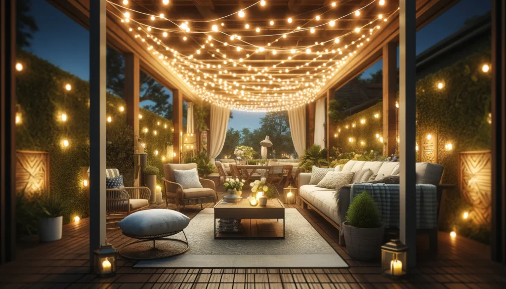 - Hang string lights across your patio to create a starry canopy effect.